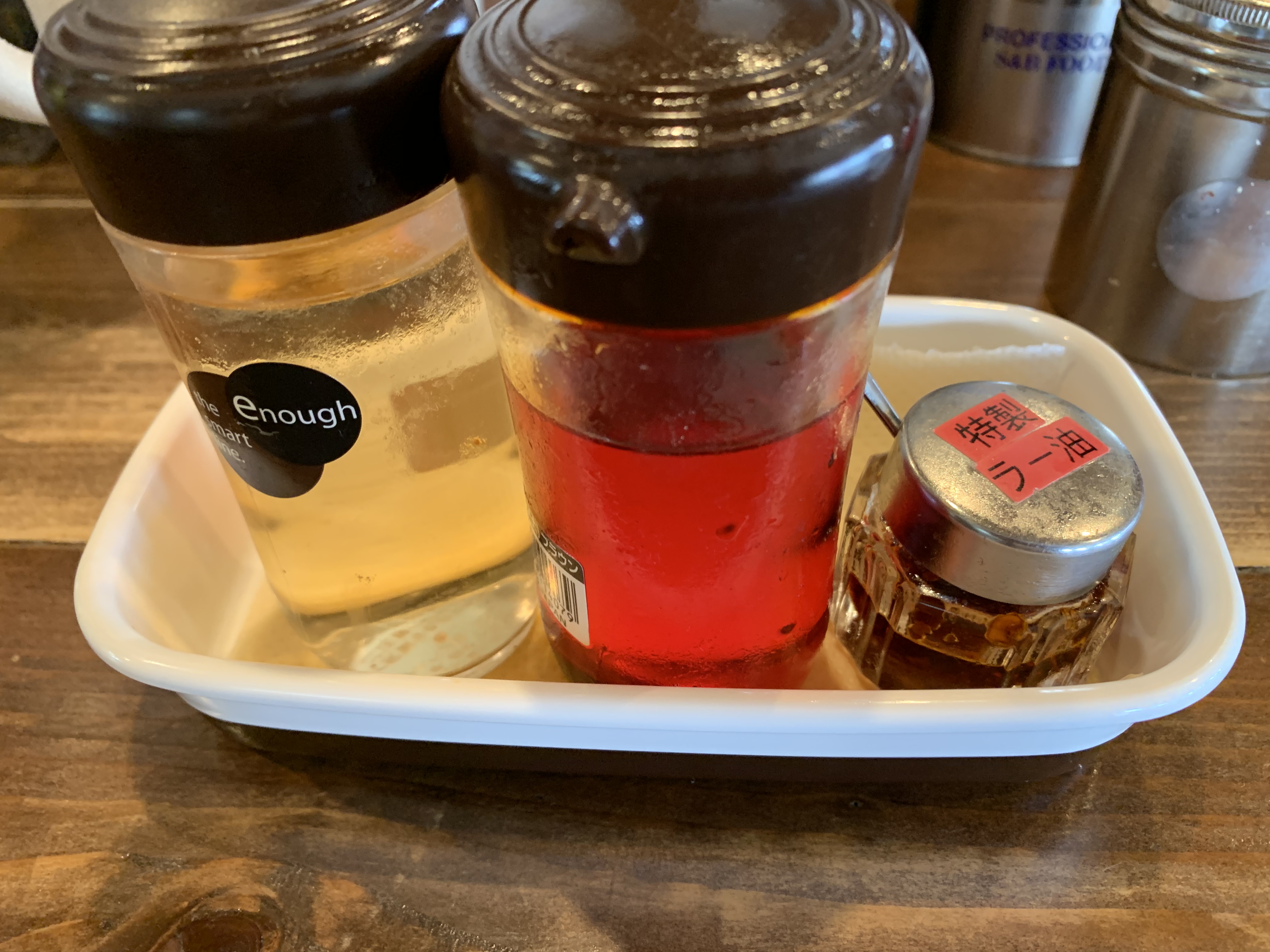 店員さんが、油そば用の調味料を持ってきてくれました。