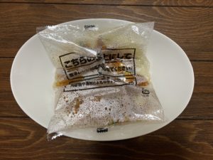 それをやけどしないようにキッチンバサミで袋を開けて…